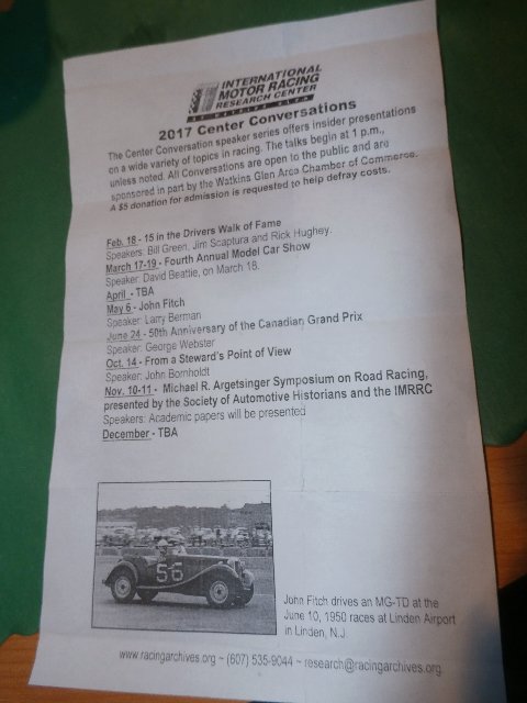 <CORSA Chapters> WATKINS GLEN UPCOMING PROGRAM ON JOHN FITCH