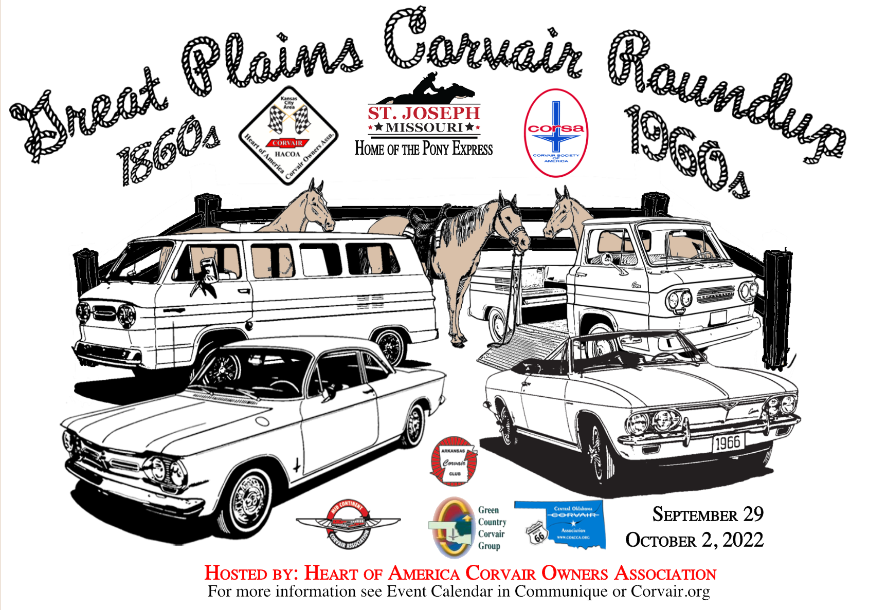 <CORSA Chapters> 2022 Great Plains Corvair Round Up logo/flyer
