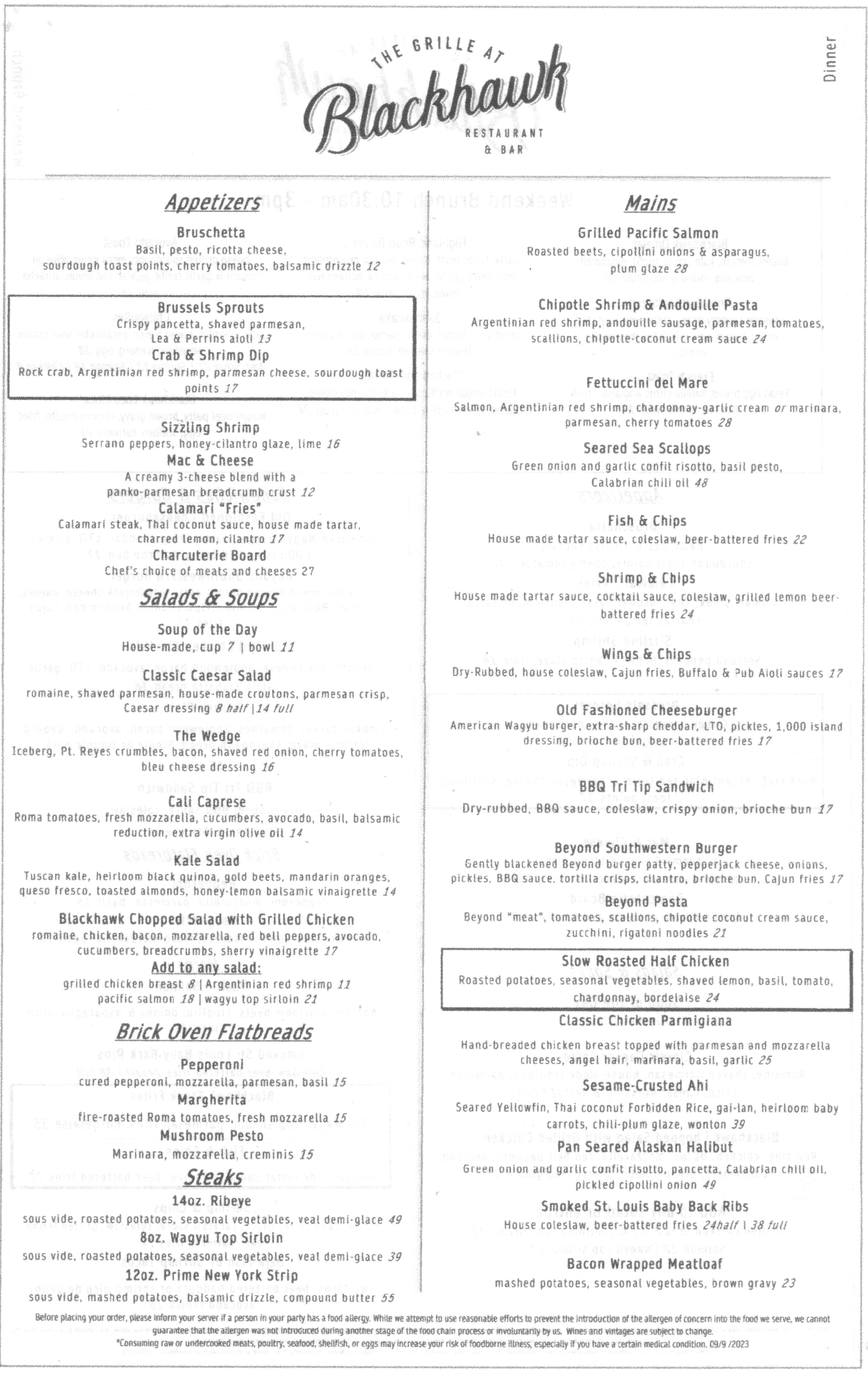 11:30 AM (I have attached a partial menu but they have other items, I am