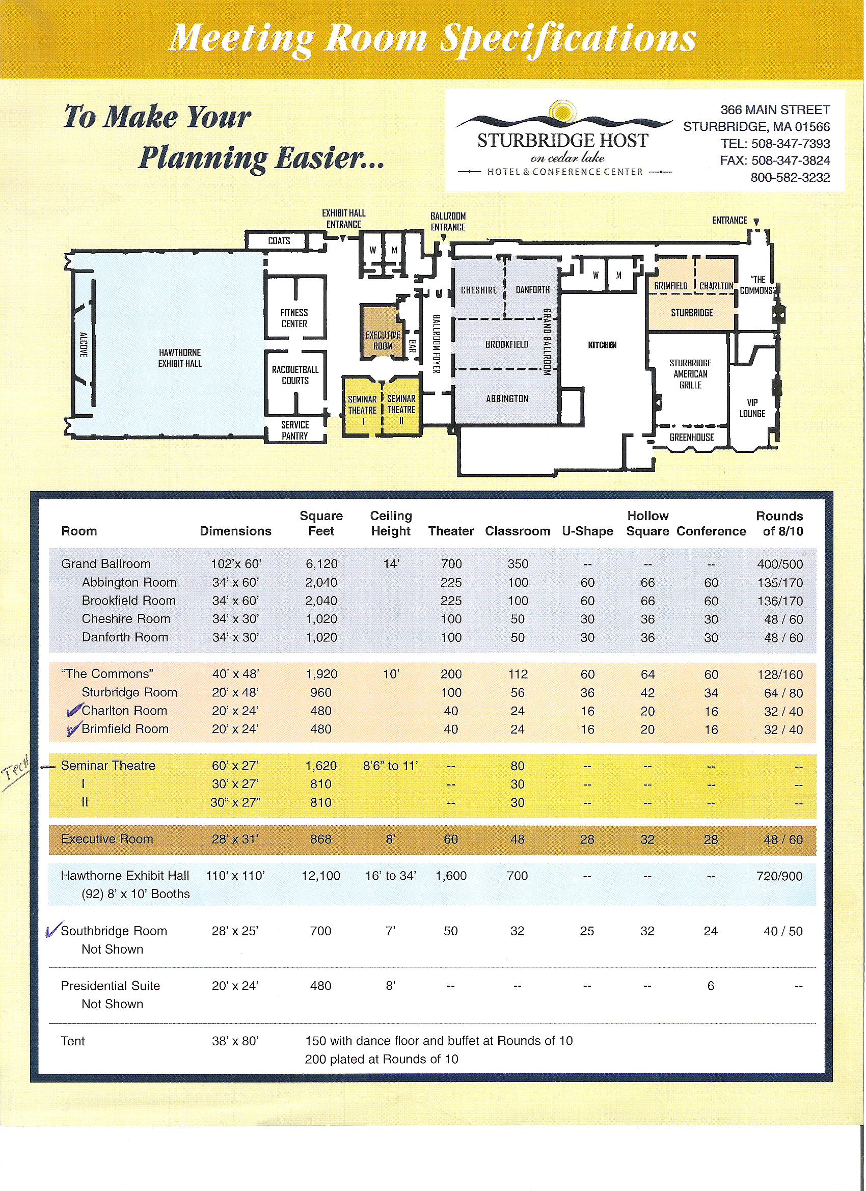 Well, it looks like we have finally finished tweaking our schedule (I hope) and I now want to finalize the meeting room space needed. I've attached a copy of the hotels meeting room info and room assignments that I have assigned for now. Next to each room, I listed the capacity with theater seating. Please look it over and reply if you see any issues or have any better ideas. There are a couple of things I need to know to finish and then run it by the hotel (this week I hope).
