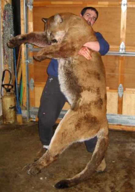 Here is a photo of a cougar killed SW of Jet Oklahoma. The guy who shot it is 6 foot tall and weighs about 220 lbs. He was in a deer stand and saw the cat pass him downwind. He then saw it pass him upwind. When the cat passed him again (closer this time) downwind, he knew that it was hunting him. So, boom.