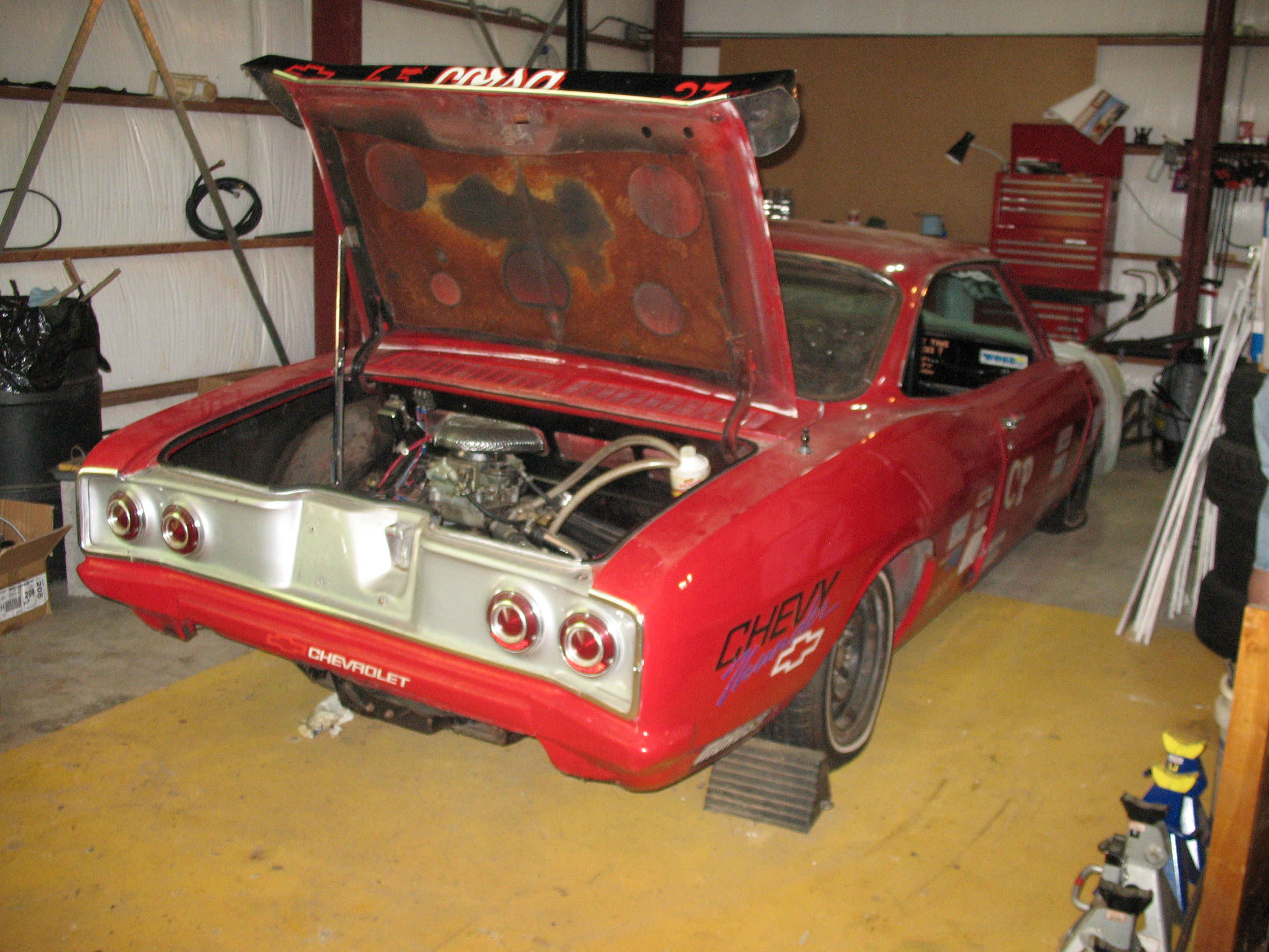 2 late model Corvairs set up for racing; quite a lot of racing parts, many are new.