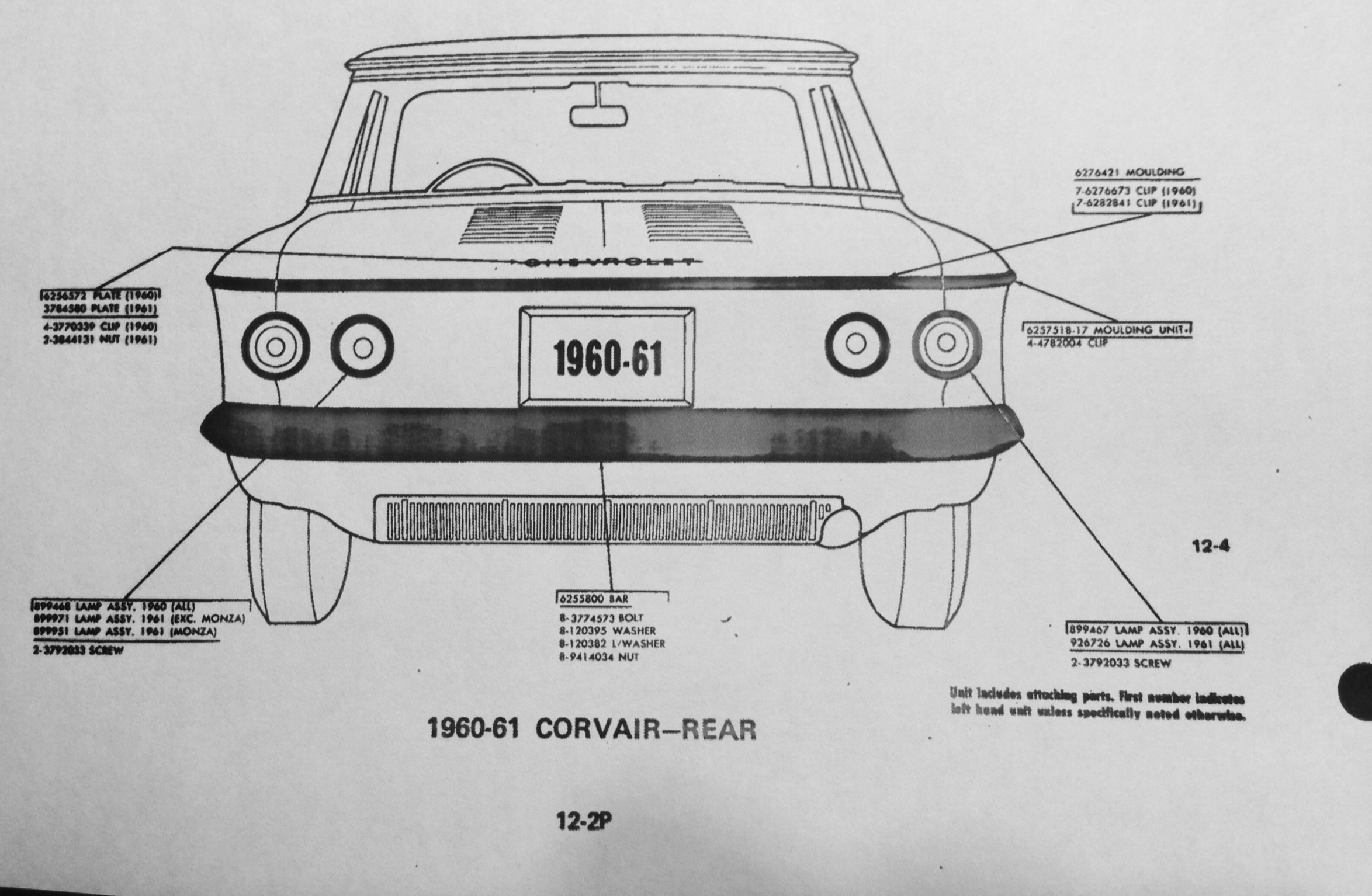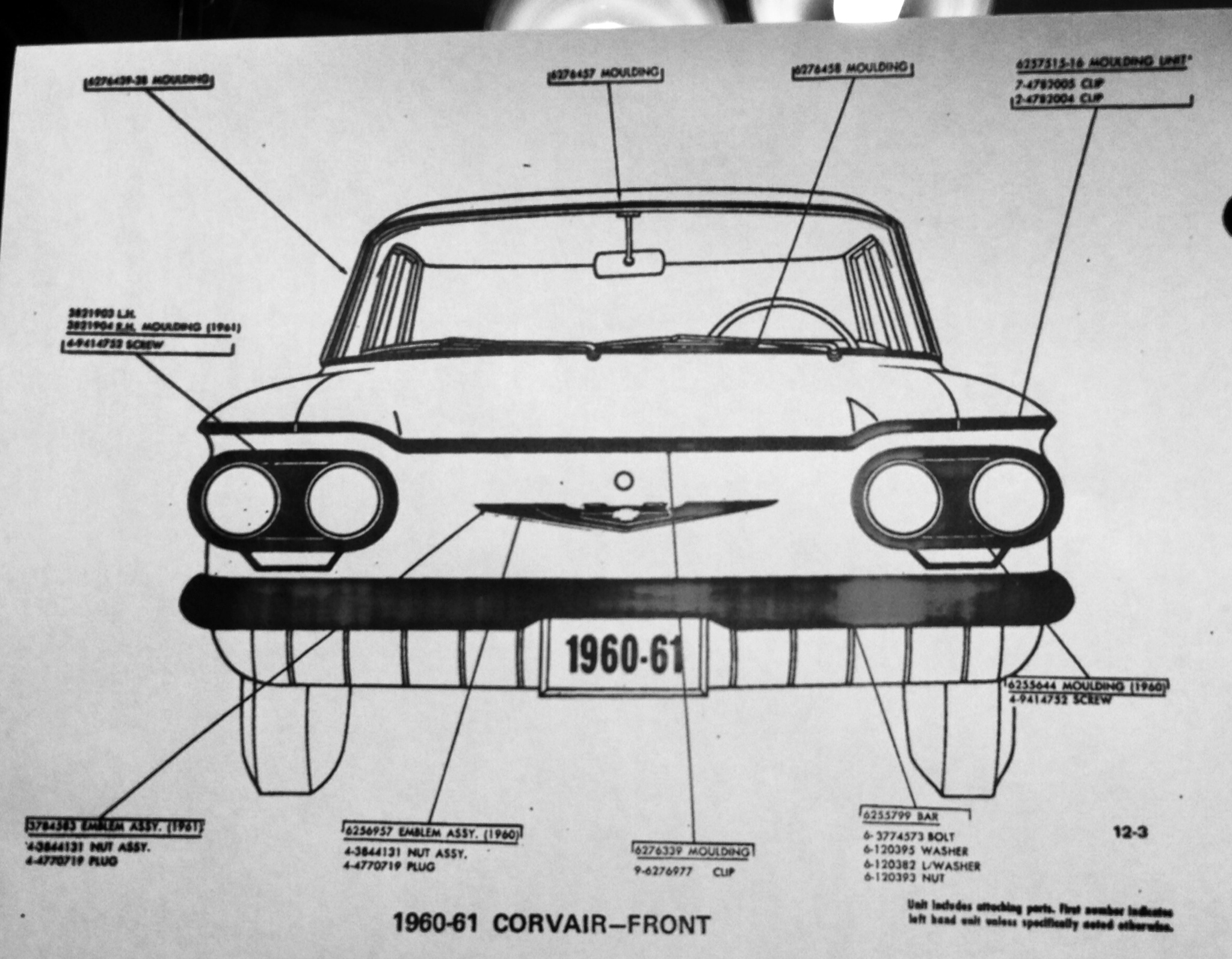 Gm clip part numbers for parts of the 1960 Corvair Coupe: