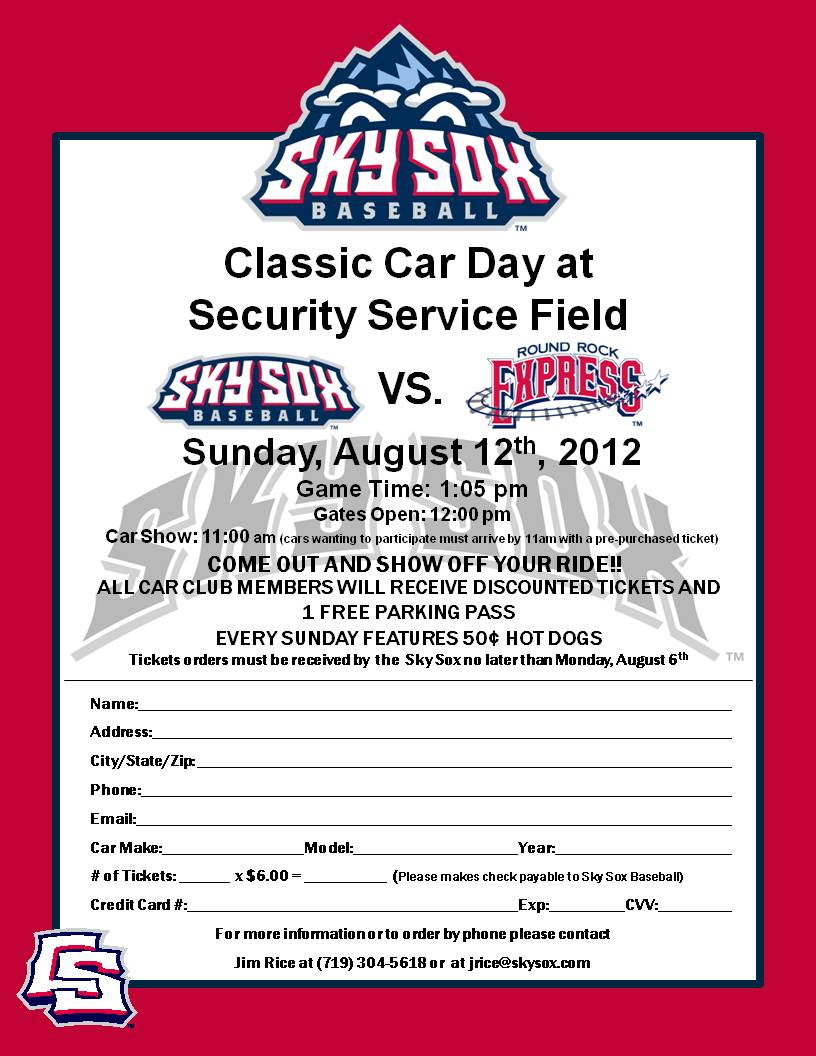 Subject: Final Reminder: 8-12 Sky Sox Classic Car Day