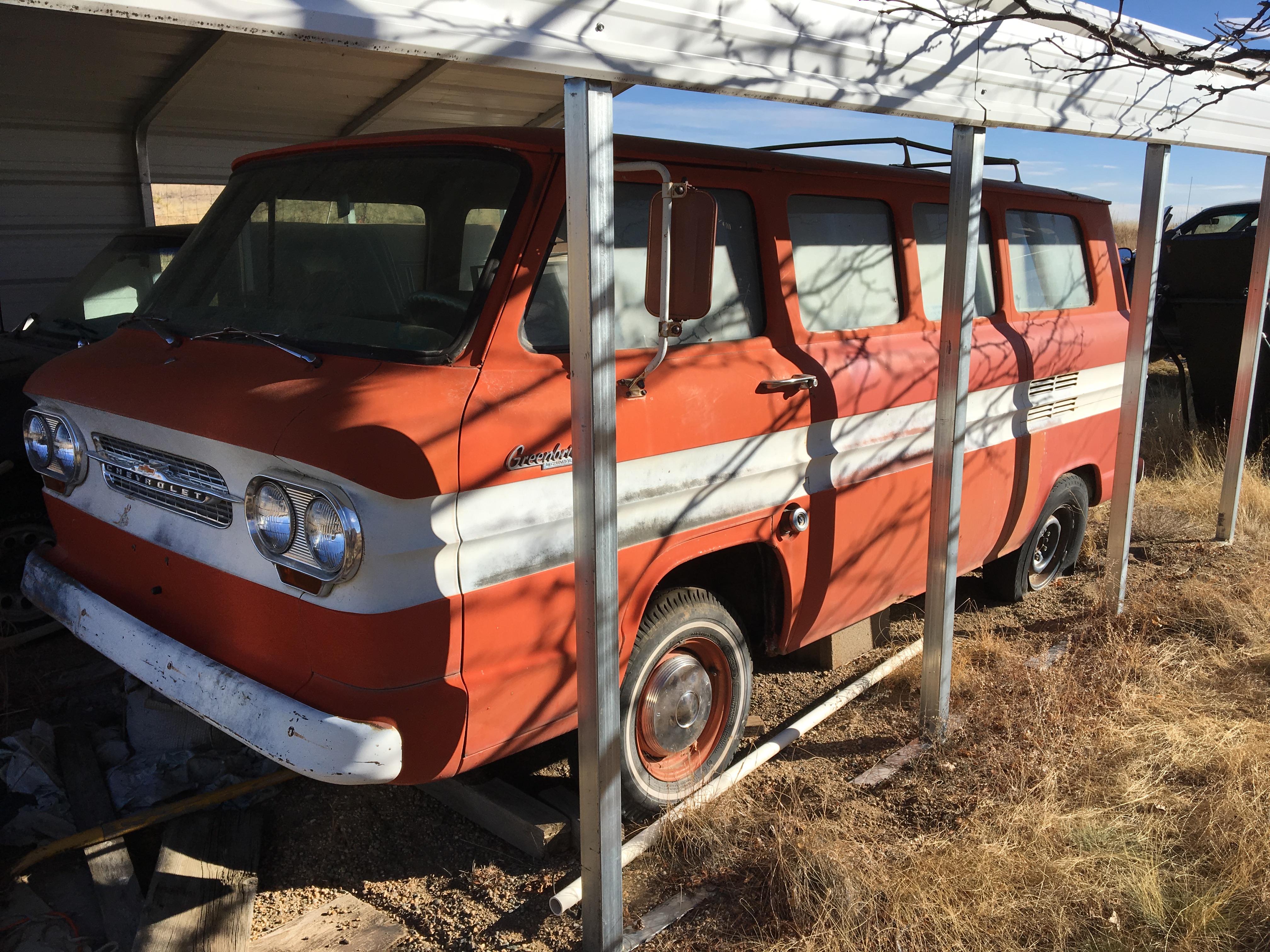 I am Personal Representative (Executor) of an estate, and need to sell a ’64 Chevy Corvair Greenbrier Sport Van. I know very little about it, but have the title and keys. It’s been sitting for a least 20 years in a carport in Loveland, CO. Might there be anyone in the Pikes Peak Corvair Club interested in it? Please reply or call.