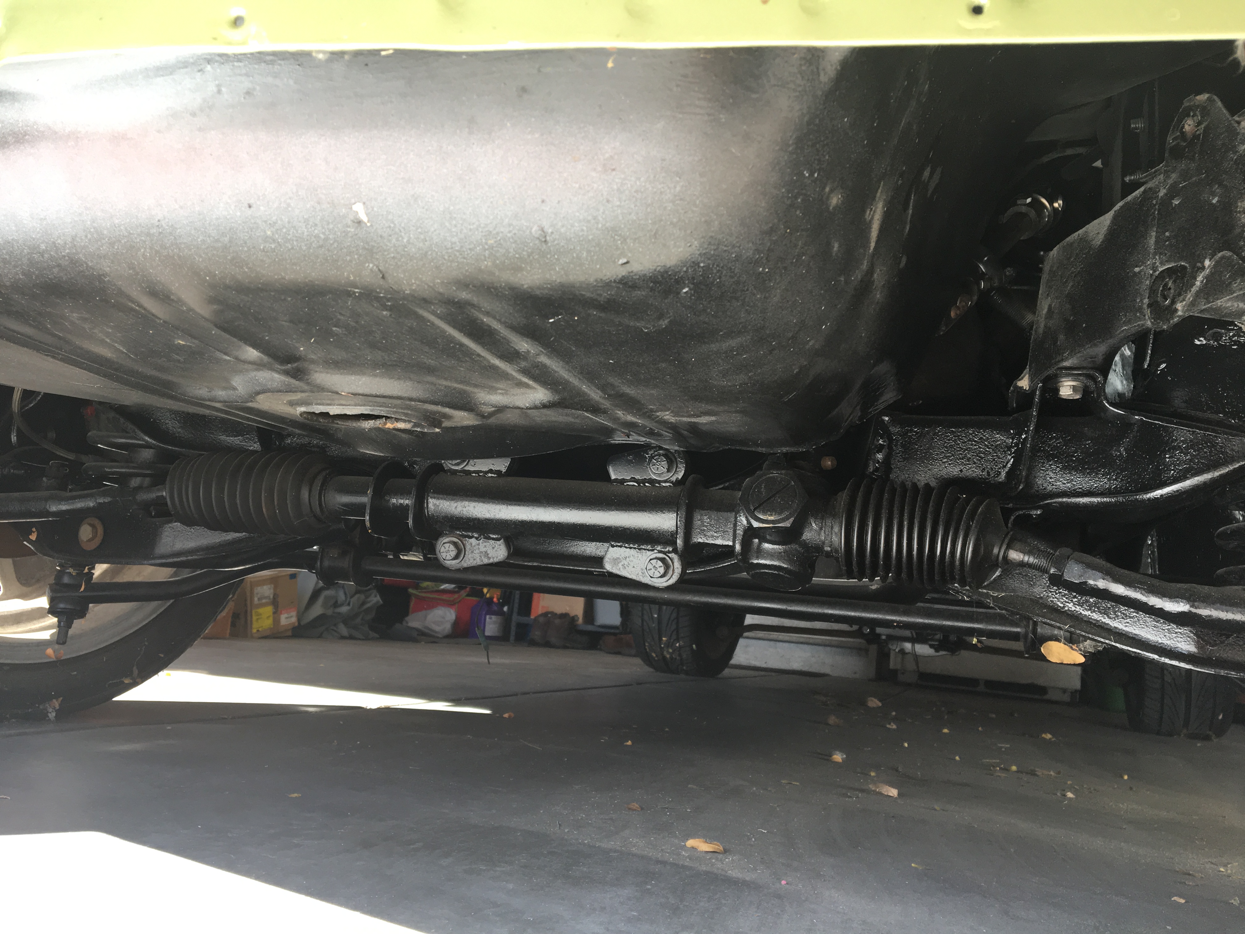 Work done on the car thus far includes a front disc brake conversion with rack and pinion steering, as well as a full front suspension rebuild. The rear suspension looks to have been refreshed as well. Windshield and front door glass will need to be obtained, but those are easily obtainable locally. Interior is not there, but that just means a clean slate for how you'd want it to be.