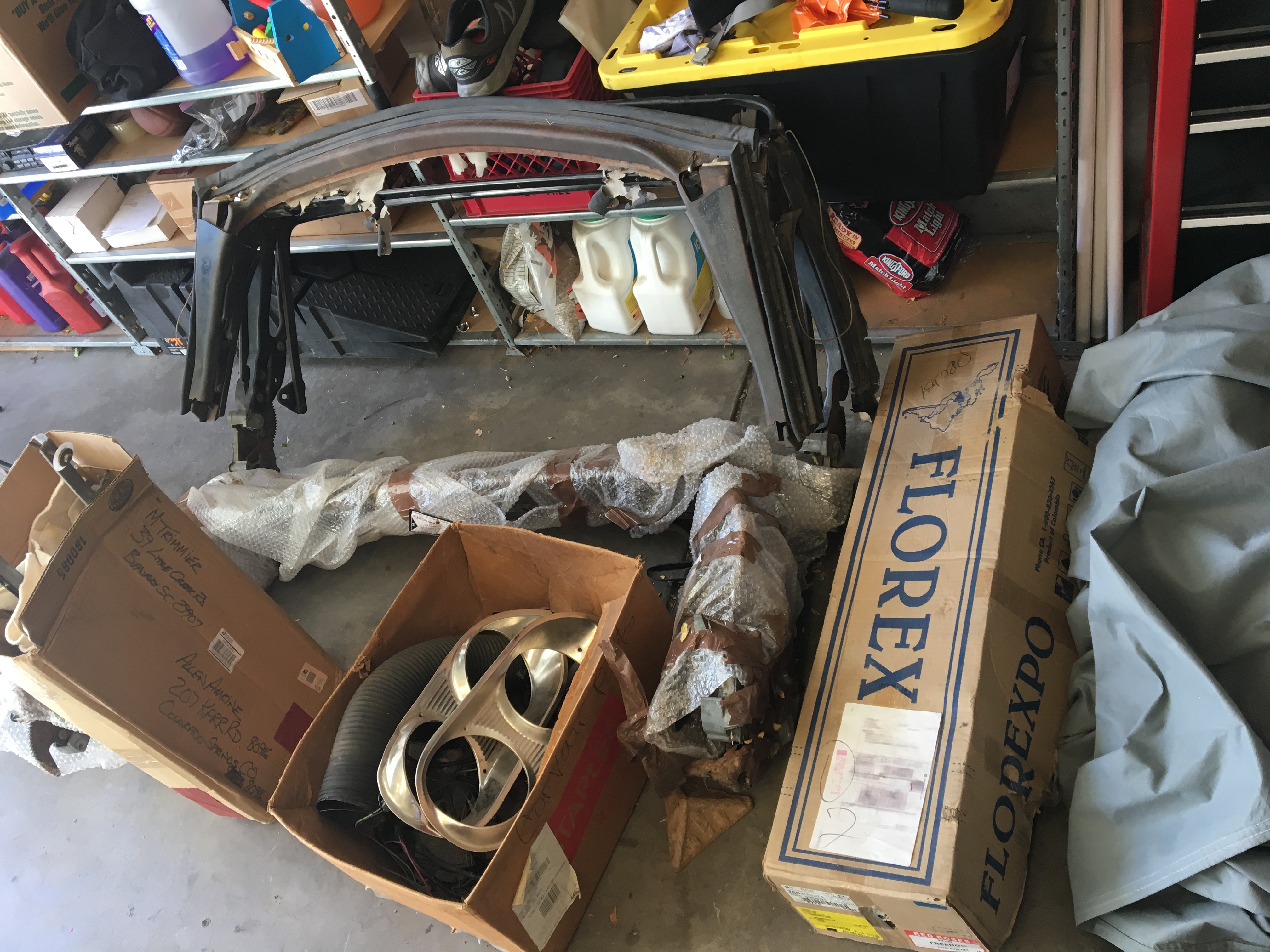The car has the power top motor and hardware, and comes with two convertible frames and a new black convertible top which is still in the box. Many of the parts which are not yet on the car, are in boxes which come with the deal.