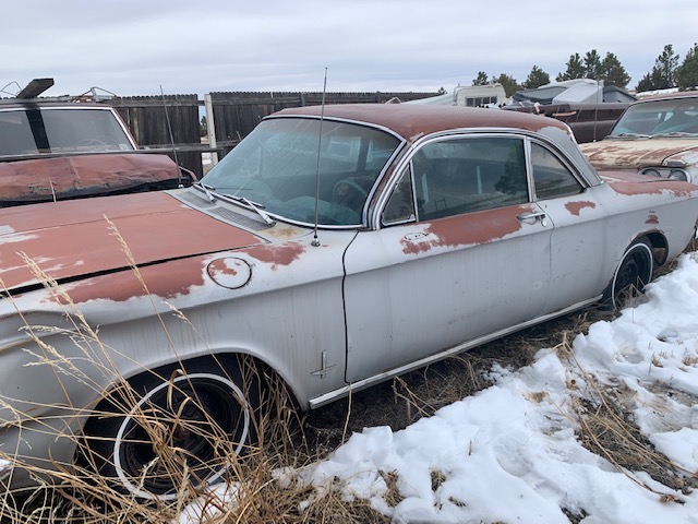 Jerry and I went to look at some Corvairs that I had been called about. Photos attached. They are out on Hwy 86 between Elizabeth & Kiowa.