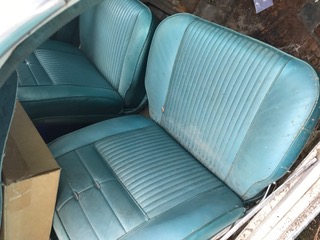>> Thanks once more . Was a Calif car , It is a coupe , 4 speed , white ext , Teal interior , seats are in great conditions , good glass all around ,new passenger floor pan In box , a little rust on pass front fender door , not sure as to eng size . Dad said he rebuilt the extra engine at some point ??? . Extra starters , Generators , transmission cases n parts , air cleaners , break parts . Tires were new a few years ago . I am in Elizabeth , CO. Best to text me at 303-513-7045 or 303-646-9860 Tom . Thanks