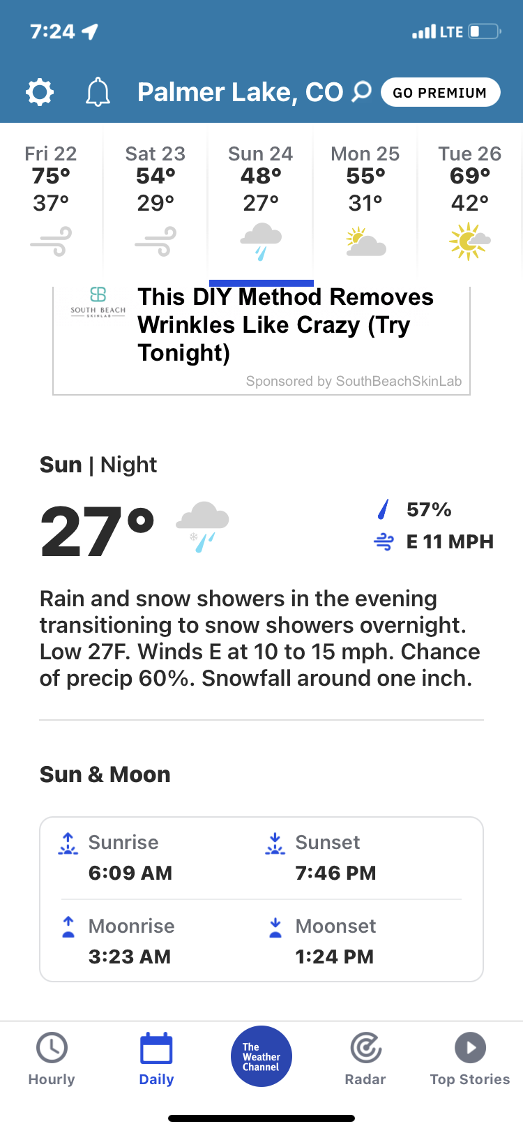> > > Last forecast I saw for Palmer Lake on Sunday shows 44 degrees and snow...
