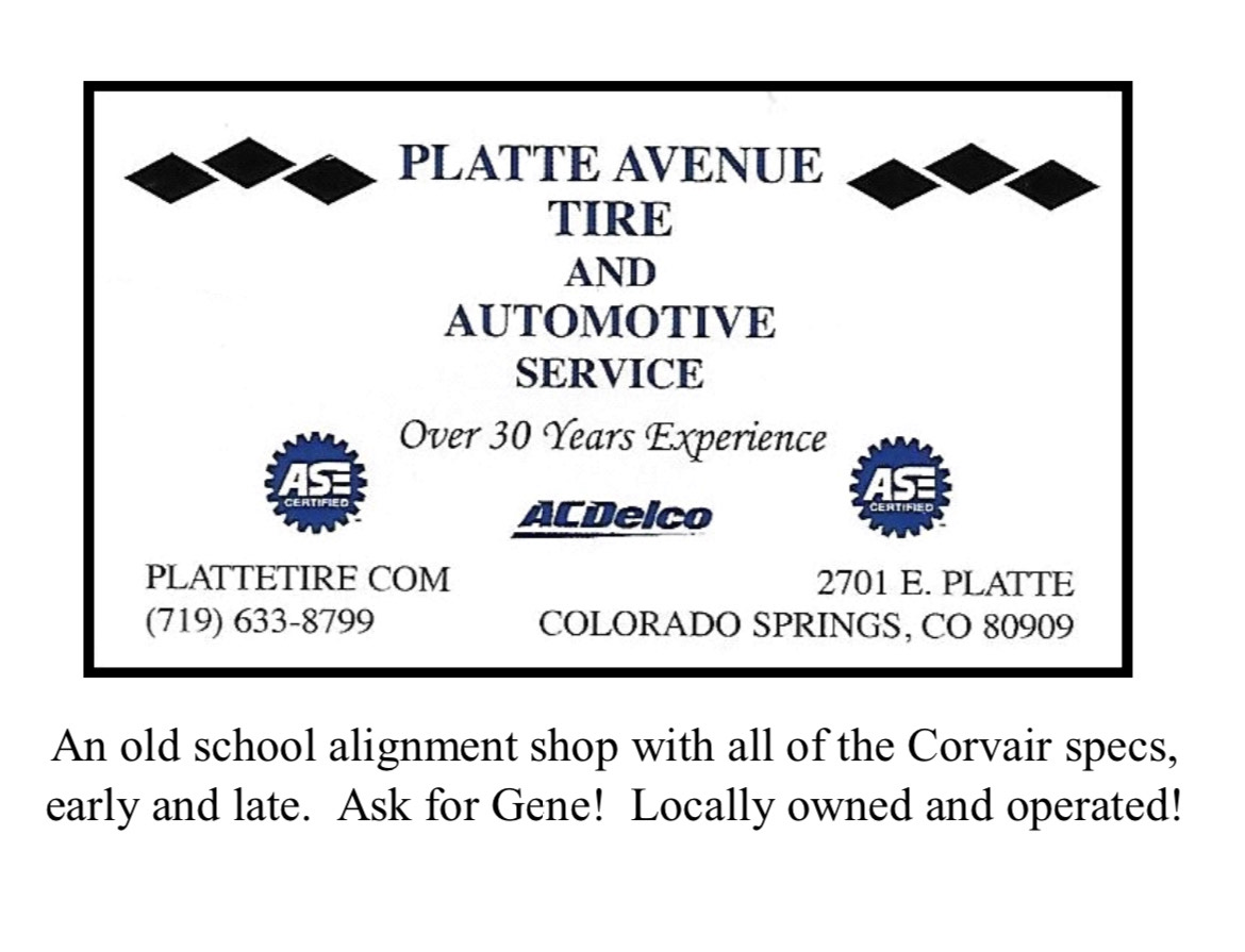 There’s a place in the Springs that does Corvair alignments…. All old school. Chris K.